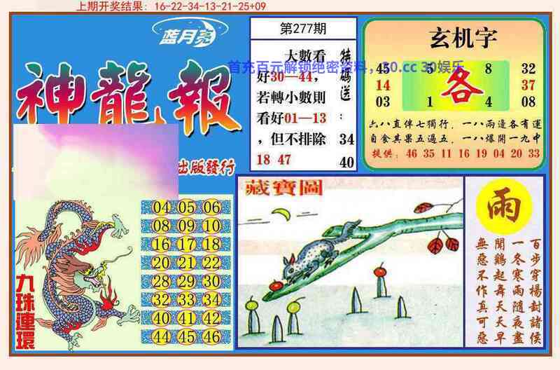 275期:【绝杀三肖】【兔鼠马】开:鸡45中